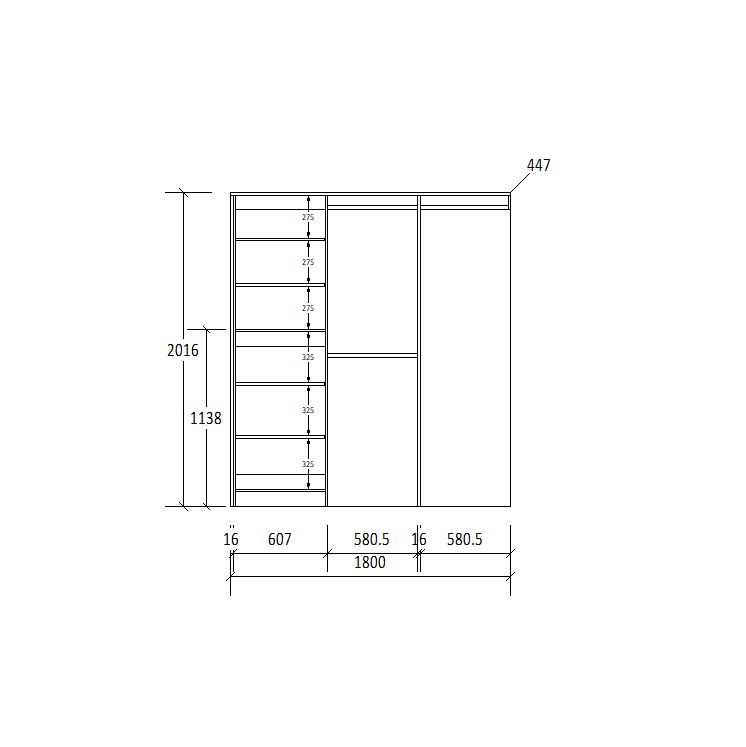 Enhance your organisation with the Galleria Wardrobe 4.0. Featuring adjustable shelves and both long and short hanging space, it accommodates various clothing items, from jackets and shirts to long dresses.