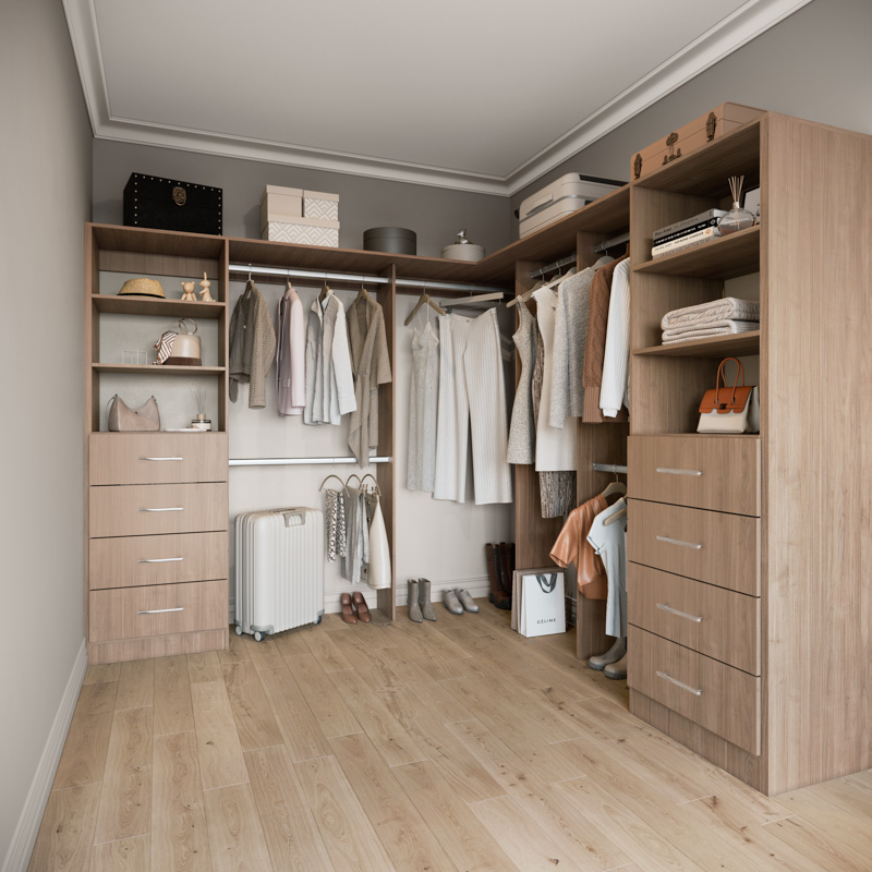Transform your bedroom into a sanctuary of order and sophistication with Stegbar's L-Shaped Walk-In Wardrobes. Experience the perfect combination of practicality and luxury, tailored just for you.